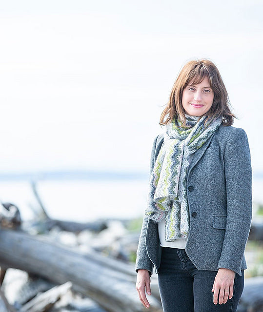 In Isager Silk Mohair, the zigs and zags of the Vintage Crocheted Scarf has a silky-sheer bliss. The soft shimmer of silk glows through the airy halo of mohair in this lace-weight yarn. Crocheted in Silk Mohair, this scarf is so light, it nearly defies gravity.
