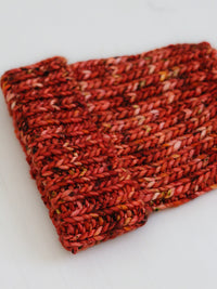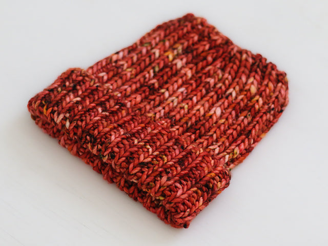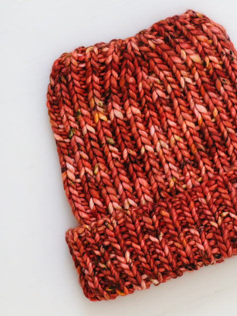 The beanie is worked from the top, down. Start with dpn’s and continue with short circular needle once all increases are done.
